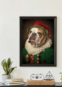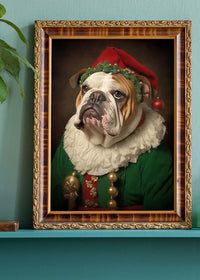 Christmas Elf Bulldog Animal Portrait Print