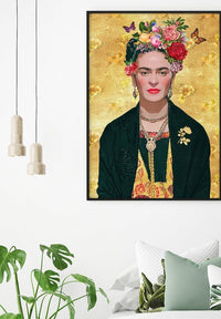 This Frida Poster print would fit perfectly into a maximalist interior design setting with its rich textures and bright colours.