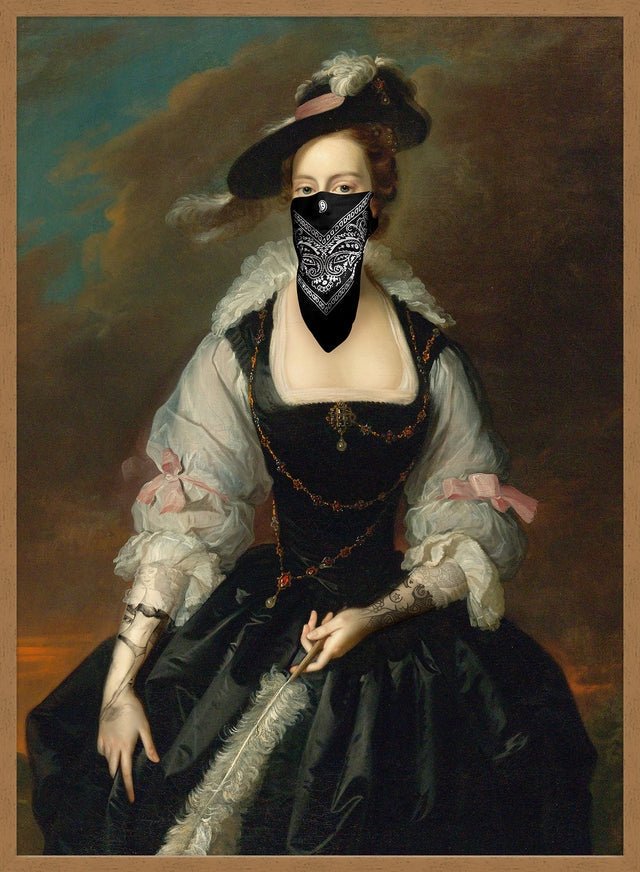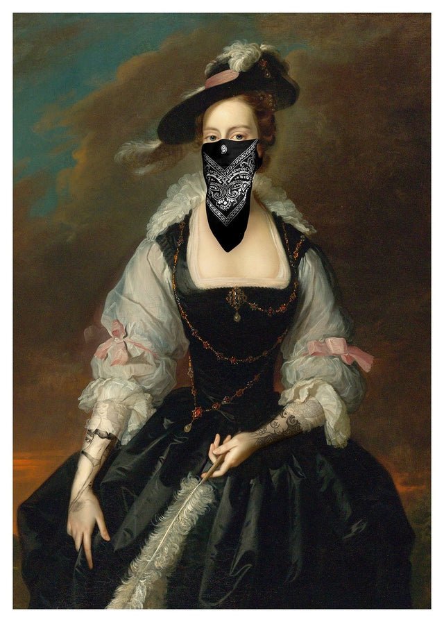 Glorious gangster! Print depicting a vintage painting portrait with a gang mask over the face.