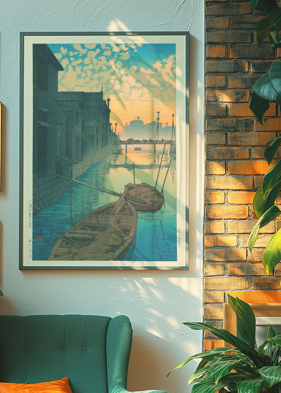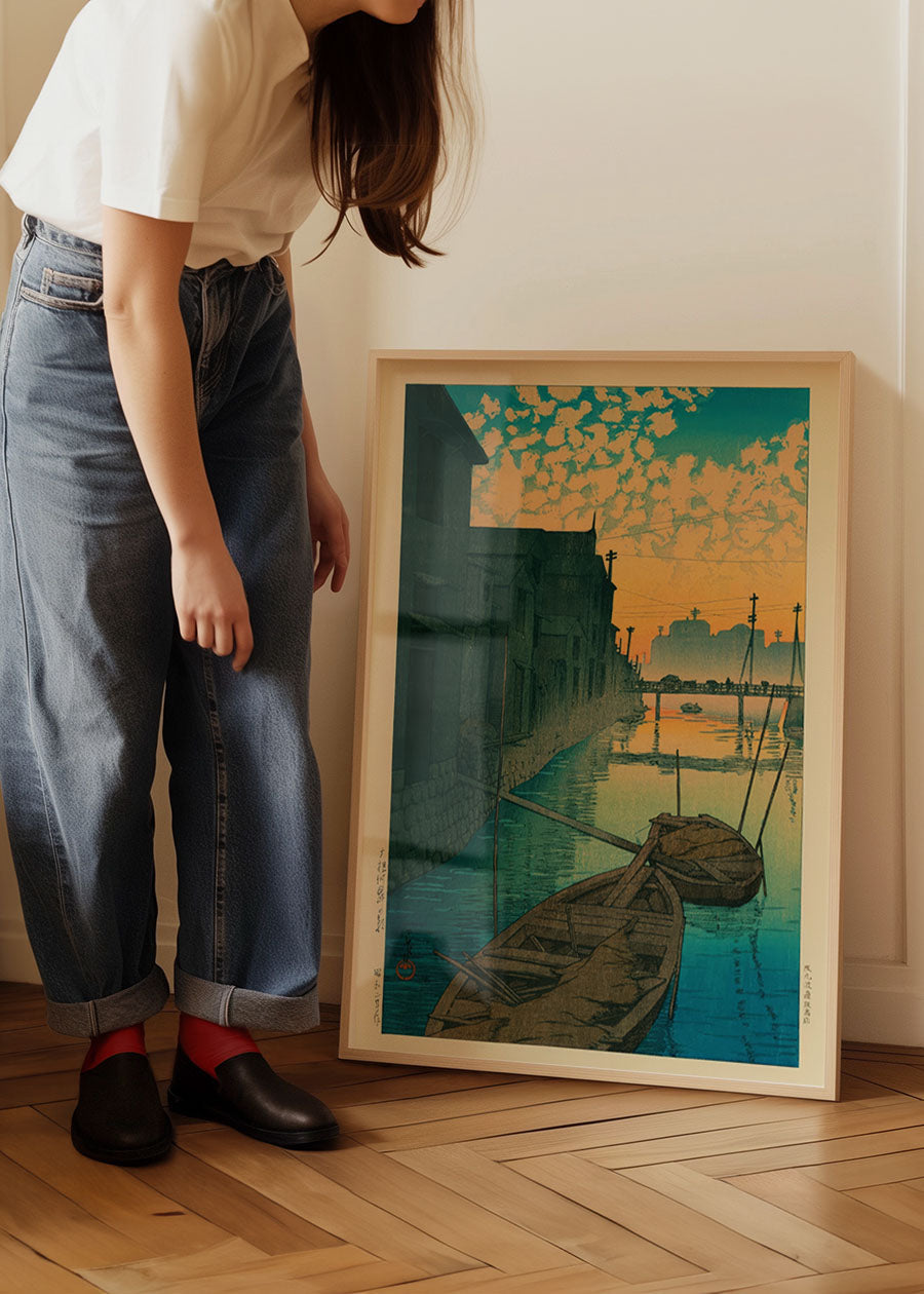 Elevate your space with a vintage Hasui Kawase art print. Perfect for vintage print enthusiasts and art lovers, this Japanese poster print is available in seven sizes: 21x30cm, 30x40cm, 40x50cm, 50x70cm, 61x91cm, 70x100cm, and an oversized 100x150cm. Pair it with our solid wooden frames (UK customers only) for a stunning display. Own a piece of history and enjoy the serene beauty of Kawase's work. Add cultural flair to any room with these timeless Japanese art prints.