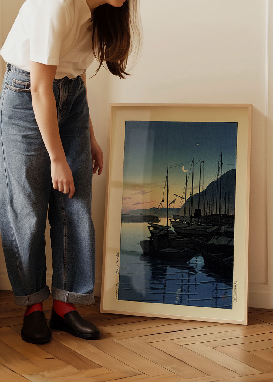 Printed on premium matte art paper, this piece offers a smooth, non-reflective finish that enhances the depth and clarity of the artwork. The high-quality matte paper beautifully highlights the intricate details of Kawase’s woodblock prints, making it a timeless addition to any decor.