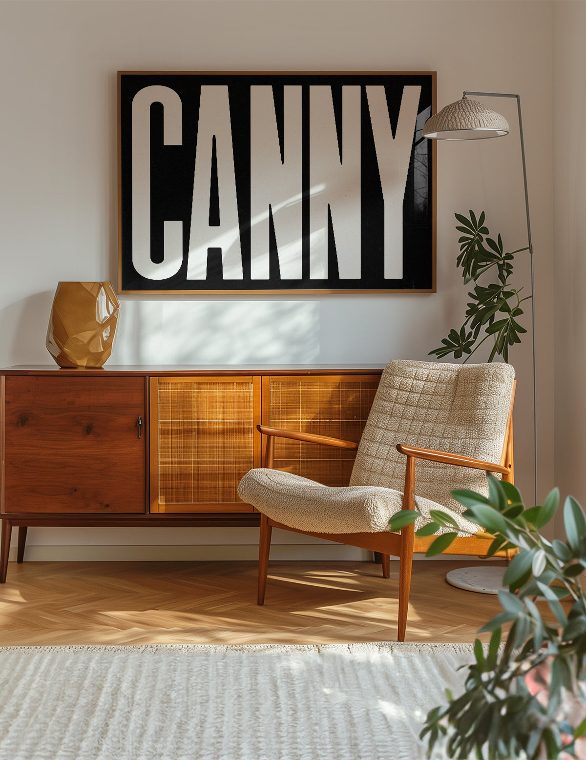 Add a splash of Northern slang to your walls with this bold Canny print. Designed for maximum impact in stark bold black and white, it’s printed on high-quality matte paper for a clean and vivid finish. A fun, stylish way to rep the North East.