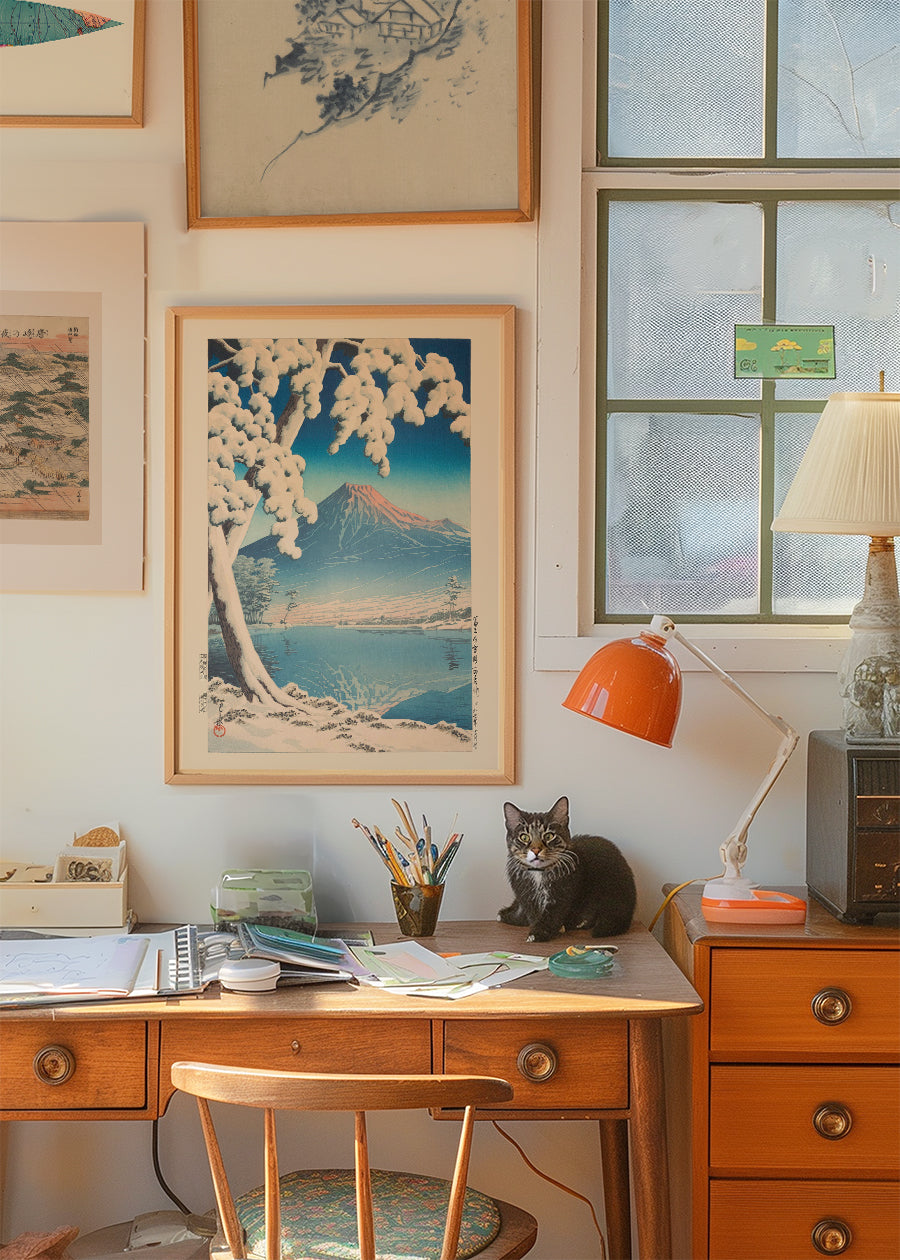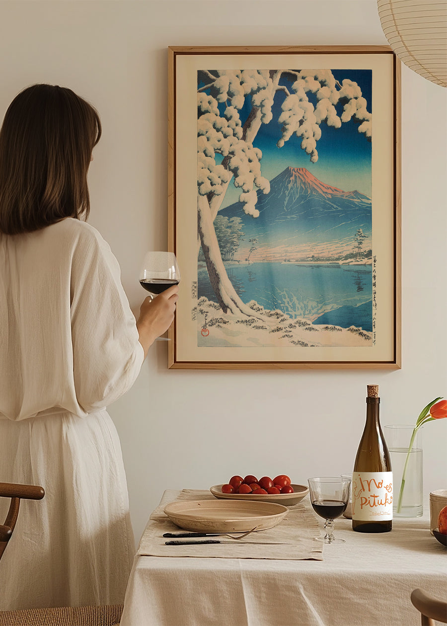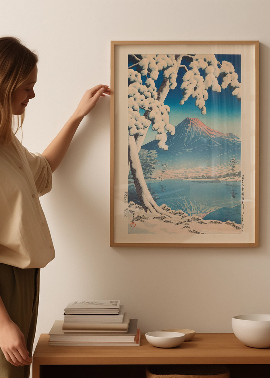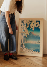 Immerse yourself in the beauty of traditional Japanese art with this stunning Hasui Kawase art poster print. A master of the Shin-Hanga movement, Kawase is renowned for his breathtaking woodblock prints, which capture Japan's serene landscapes in incredible detail. His work showcases the delicate balance between nature and seasonal beauty, from tranquil lakes to snow-covered villages.