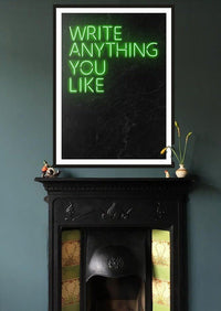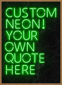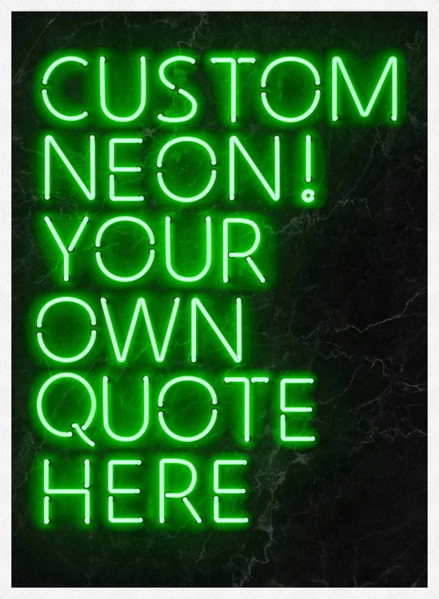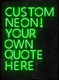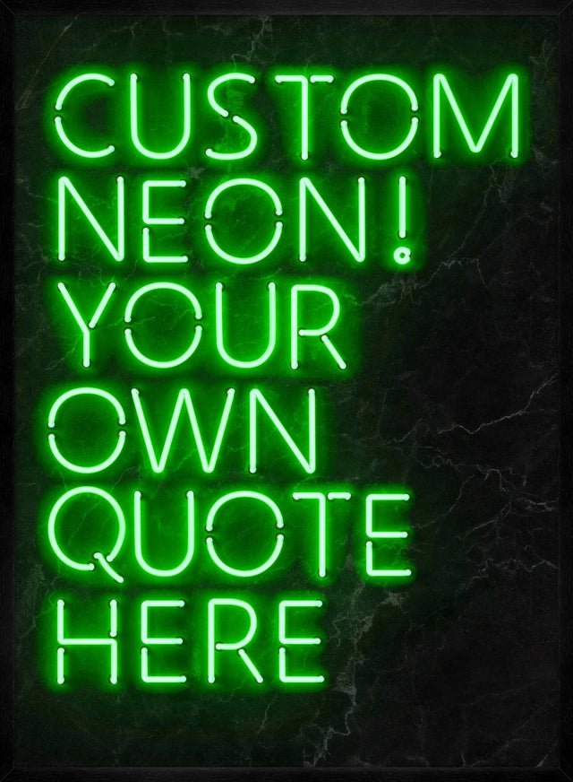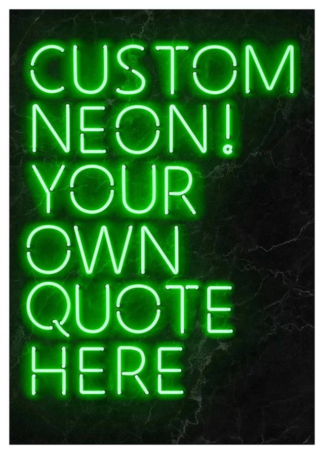 Say whatever you like in a glowing Neon sign! (well, in 100 characters!) A few of our customers told us they would LOVE it if we could write whatever name / slogan / quote / lyric they wanted in Neon style, so we obliged! Simply fill in the custom text box underneath, and we will typeset your favourite saying in our beautiful, bright glowing Neon lettering! Please note that you will have to trust us on the design & layout (take a flick through the examples), as these prints are non-refundable unless damaged or faulty. But fear not as our in-house designers will make it look great!