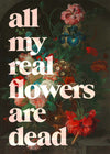 Part of our huge range of quirky wall art poster prints. Featuring an old still-life oil painting we have turned this into a funky, trendy art print by adding the slogan “all my real flowers are dead” daubed over the top in graffiti-style urban-art typography.