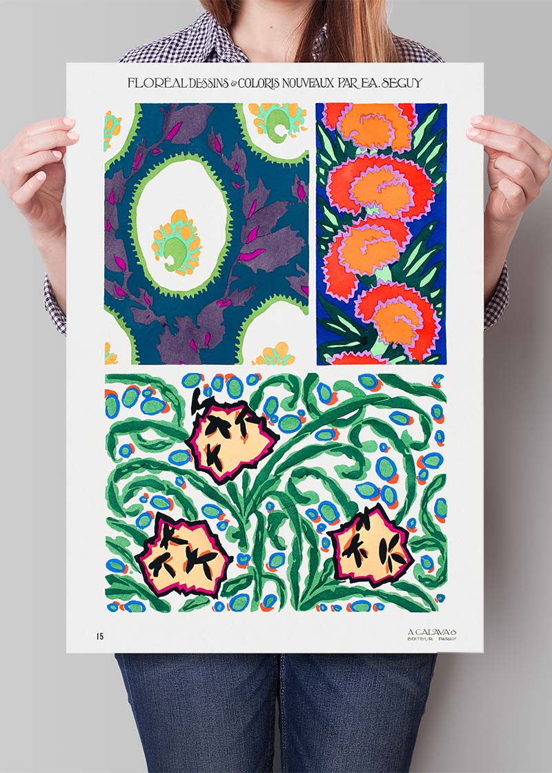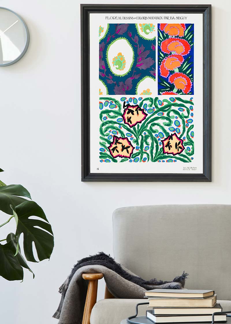 Step into the mesmerizing world of Emile-Alain Séguys with our stunning art print. Inspired by the captivating aesthetics of art-deco and art nouveau movements, this print is a true homage to the golden era of design. Expertly crafted on premium 230gsm art paper, it beautifully showcases Séguys' mastery in capturing the essence of nature through intricate patterns and vibrant colors. From the delicate curves of textiles to the mesmerizing symphony of organic forms, every detail in this print evokes a sense of elegance and sophistication. Bring a touch of timeless beauty to your space with this on-trend poster print that effortlessly merges art, patterns, and style.