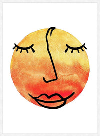 Super happy good vibes print featuring a sunset coloured sun with paint brushed style smiling face. This modern print will bring a ray of sunshine into any of your interiors.