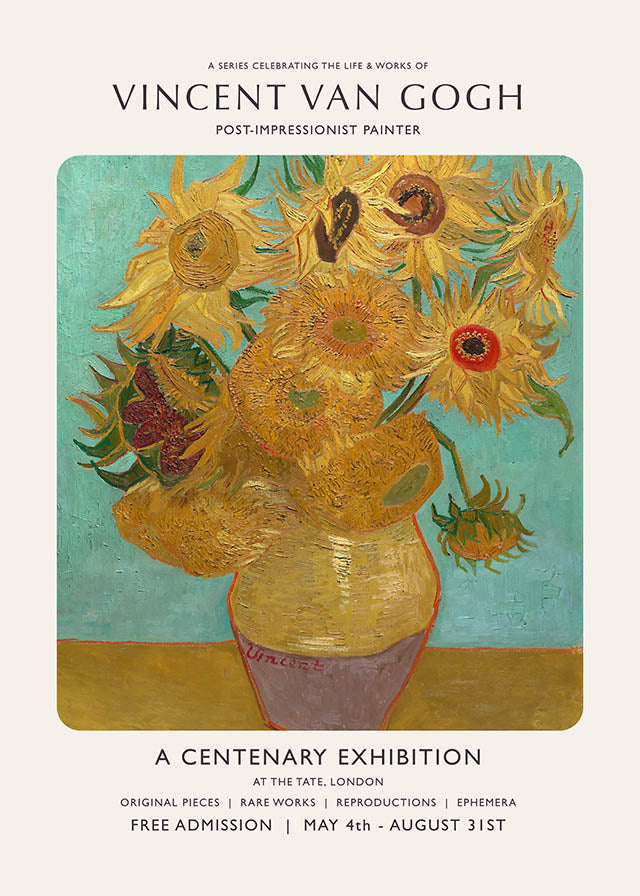 Vincent Van Gogh Sunflowers centenary exhibition poster