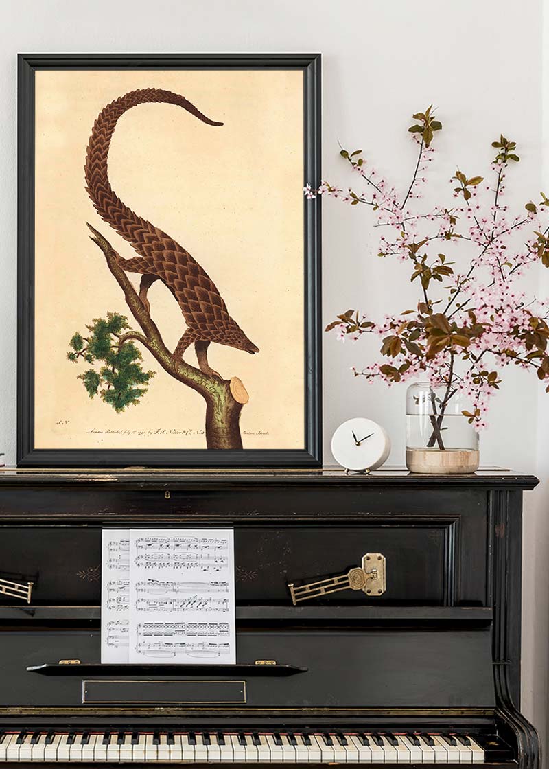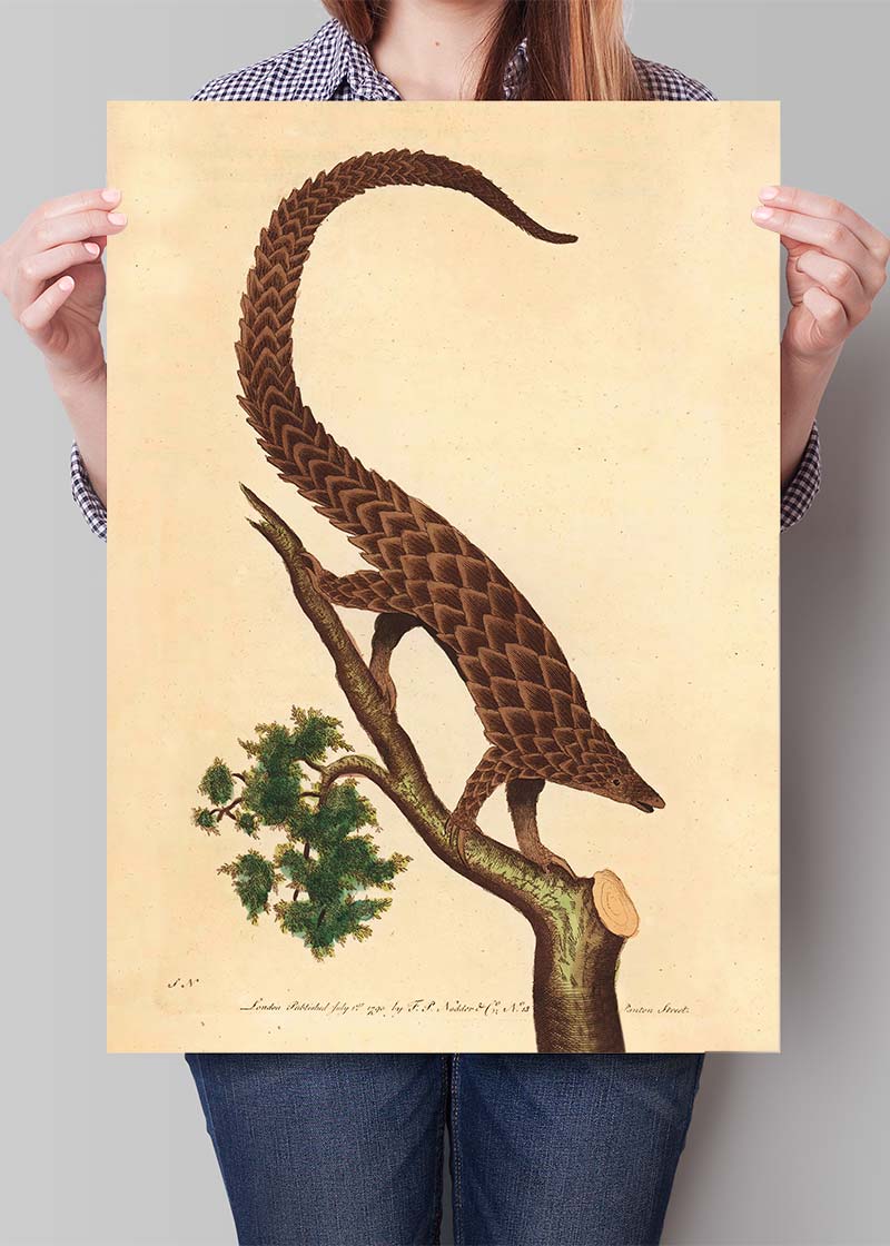Uncover the pinnacle of artistic mastery in our art print featuring the pangolin illustration by George Shaw and Frederick Nodder from "The Naturalist’s Miscellany." Carefully replicated on superior 230gsm paper, this piece distinguishes itself with robustness and a sumptuous texture. The inks, resistant to fading, guarantee enduringly vibrant colors. Beyond a mere home adornment, this art print signifies your profound admiration for nature's allure. Whether showcased in your living space or workplace, it enthralls, leaving a refined impression. Invest in this ageless masterpiece, a harmonious fusion of art and nature, and enrich your surroundings with timeless sophistication.