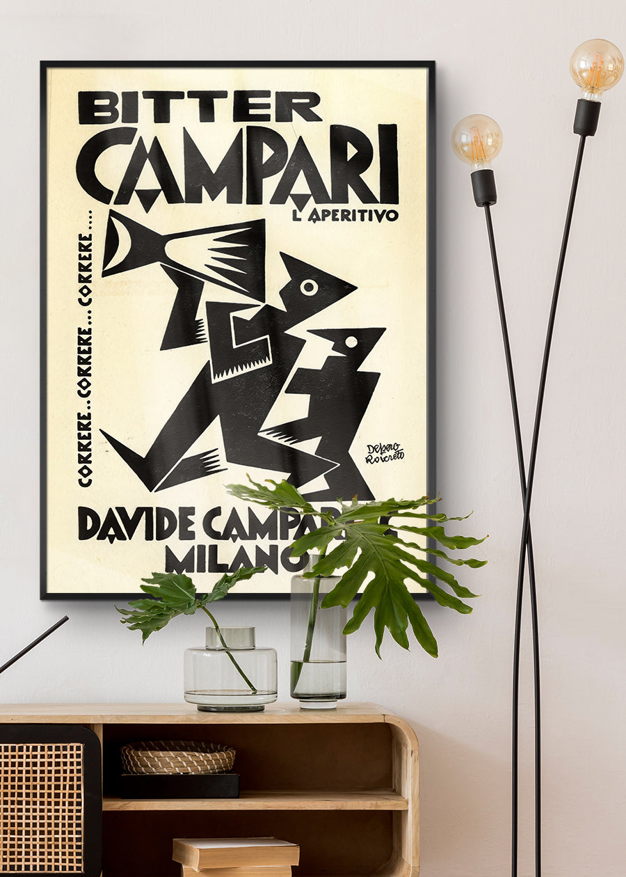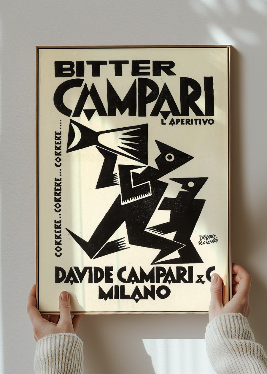 Featuring a reproduction of a vintage Campari poster by famed Futurist artist Fortunato Depero, this print adds a stylish touch to any space. The artwork, known for its vibrant depiction of Campari and Aperol, is printed on high-quality matte paper for a sleek, timeless look.