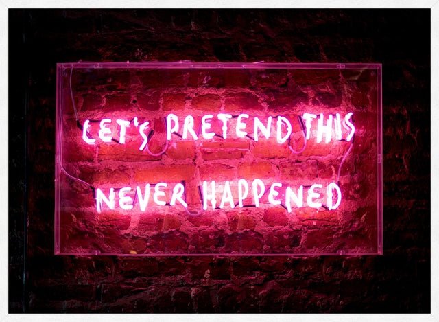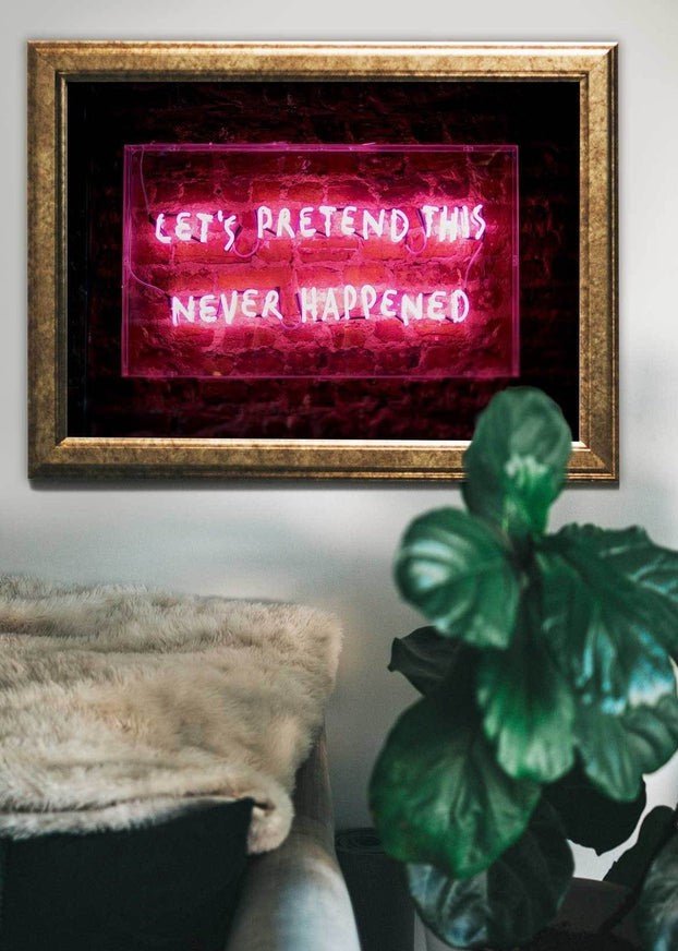 Beautiful glowing statement Neon Print! Cheeky quote artwork reading "let's pretend this never happened".