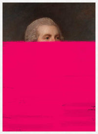 A vintage portrait painting with added graffiti gives the impression it has been submerged or dipped in paint.