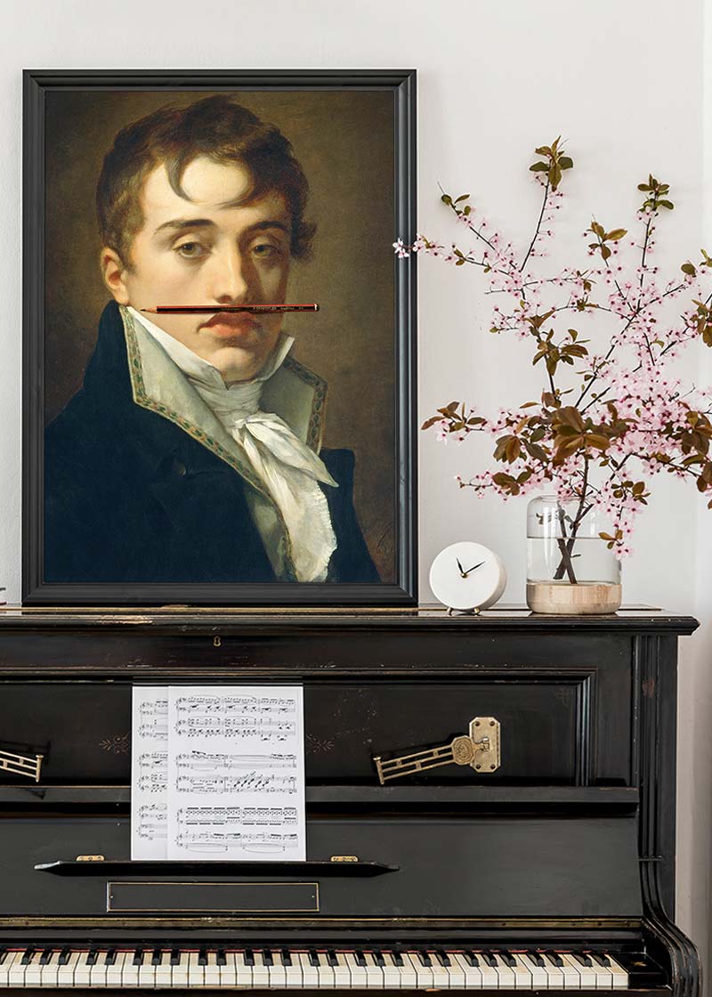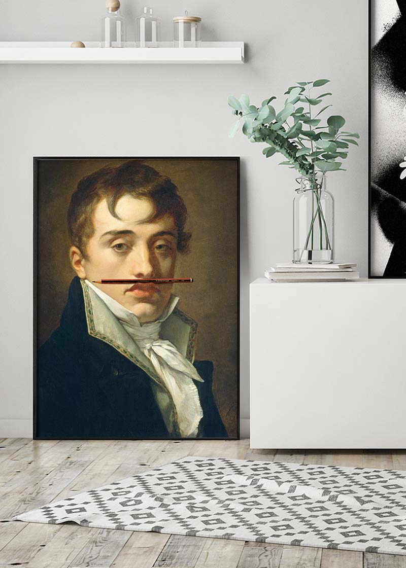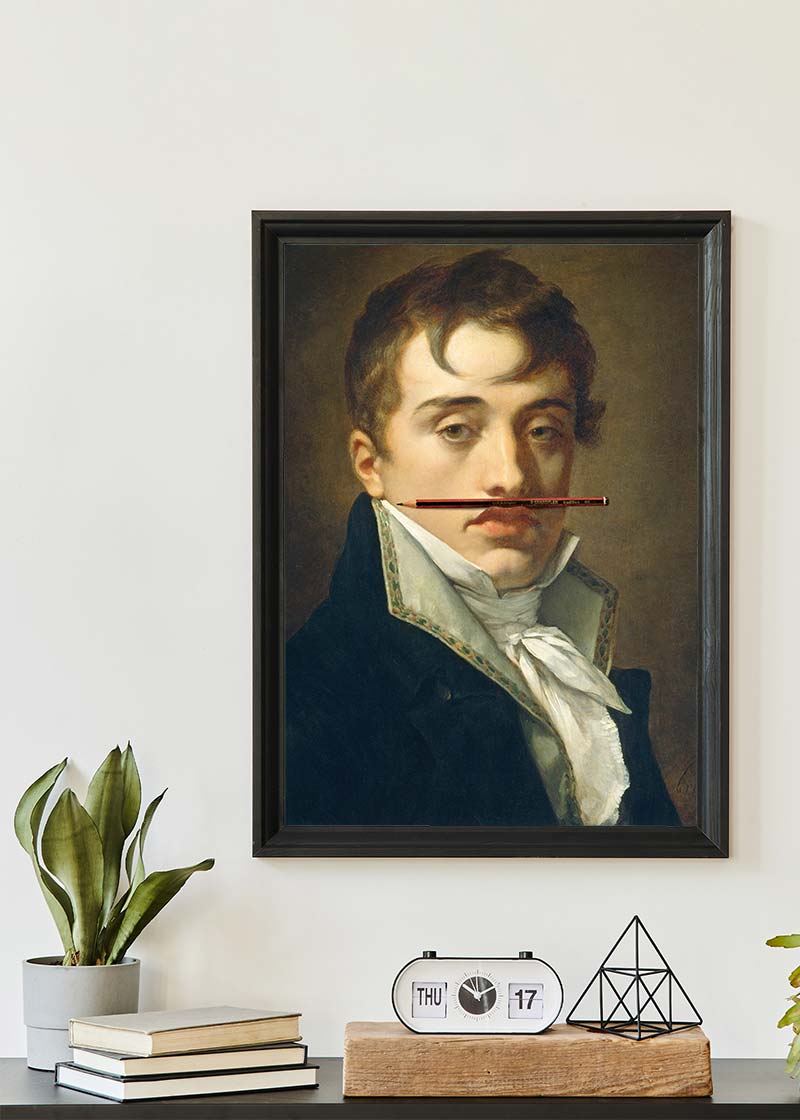 This portrait painting by Pierre Paul Prudhon has an instantly recognisable HB Pencil added in a cheeky moustache position, Schoolground antics style!