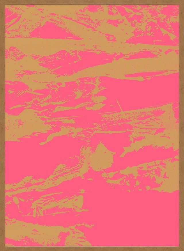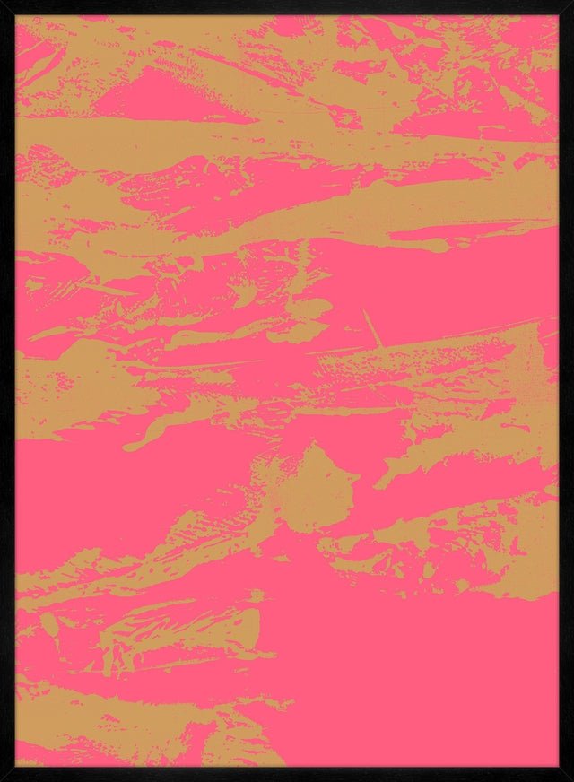 Urban style art print with a hint of inky graffiti in striking pink and gold colour.