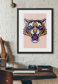 Vintage style poster of a Tiger face. Bring some cool wildlife to your wall art with this cool edgy art print. Give your home decor a super cool edge with Ink & Drop art work.