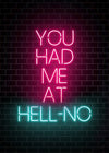 Striking graphic print on thick, matte or gloss art paper. A cheeky twist on the "You Had Me At Hello" slogan set in glorious glowing neon text! This Neon style super punchy photographic artwork will bring a striking burst of trendy neon colour to an interior space.