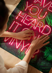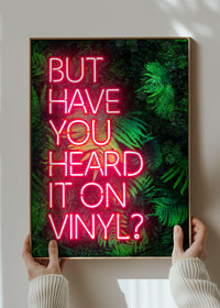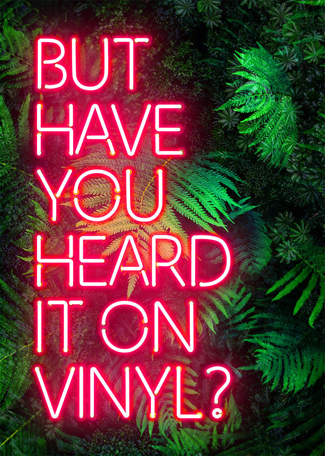 The now best-selling Have You Heard It On Vinyl Print, set in glorious neon-style lettering over a leafy fern green background. Perfect for vinyl record collectors and music geeks alike!