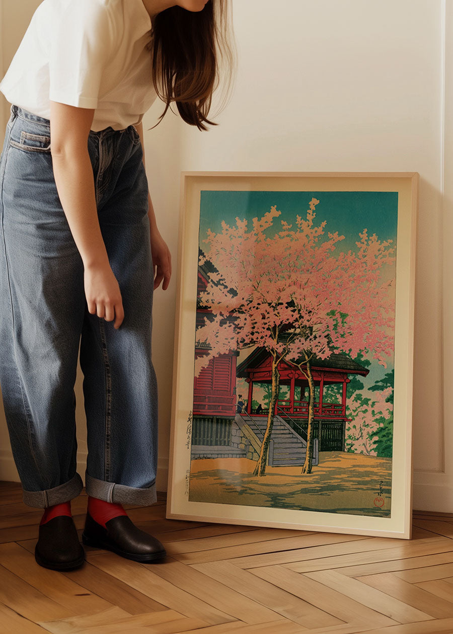 Printed on premium matte art paper, this piece offers a smooth, non-reflective finish that enhances the depth and clarity of the artwork. The high-quality matte paper beautifully highlights the intricate details of Kawase’s woodblock prints, making it a timeless addition to any decor.