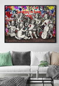 Graffiti, Urban Art poster print which shows an urban tagged graffiti wall after these Cheeky Cherubs have had their way.