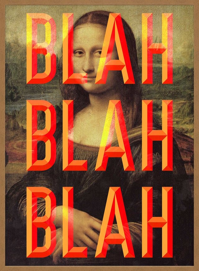 Now in 4 Colours! Super trendy contemporary print depicting one of the world's most famous paintings, the MONA LISA, with a modern typography overlay. BLAH BLAH BLAH