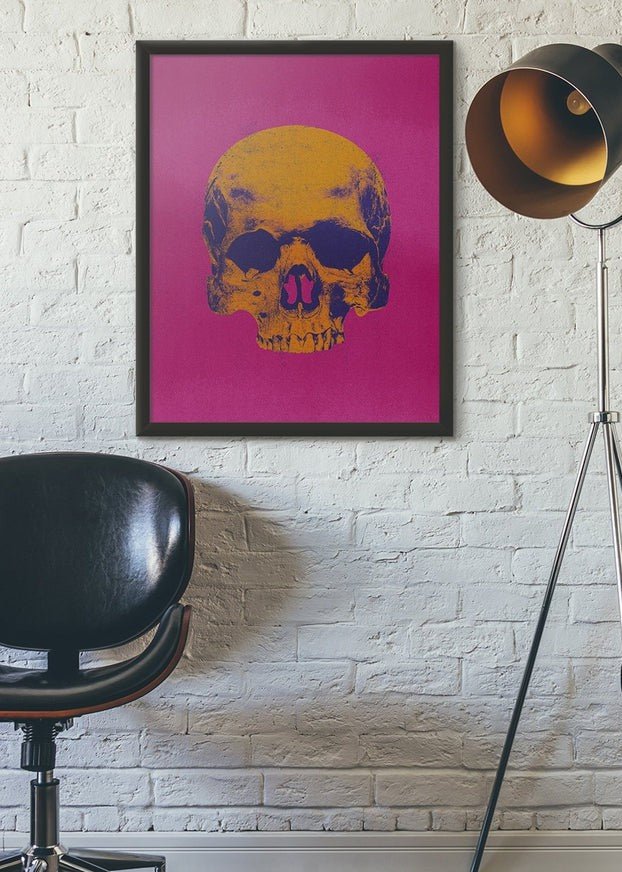 Striking graphic print on thick, 250gsm art paper. Our super-popular, iconic Gold Skull Print just got an Andy Warhol poster pop-art style makeover! Taking influence from the recognisable colours of Warhol's famous screenprint poster work, this print is best in the larger sizes and will be sure to turn heads in your home.