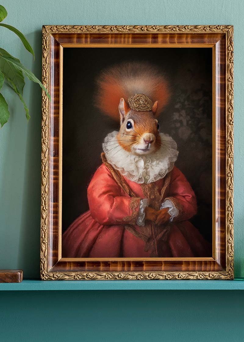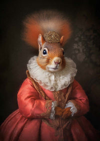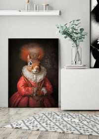 Introducing our "Red Squirrel Portrait" Art Print—a delightful and whimsical addition to your home decor. This high-quality art print showcases a one-of-a-kind, hilarious portrait of a squirrel with a human body, elegantly dressed in human clothes.
