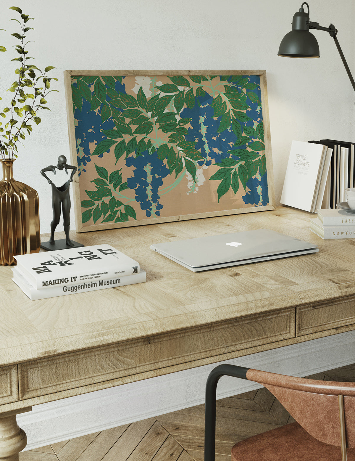 Infuse your home with the delicate beauty of this Wisteria Art Print by Kamisaka Sekka. The soft, flowing blooms evoke tranquility and timeless elegance. Printed on high-quality matte paper, this poster print adds an understated yet captivating touch to any scandi style interior. Perfect for home decor enthusiasts, it brings nature’s charm into modern living spaces, blending seamlessly with minimalist design and offering a serene focal point for any room. Add one of our quality wooden frames to complete the look, your print will even arrive professionally framed and ready to hang.