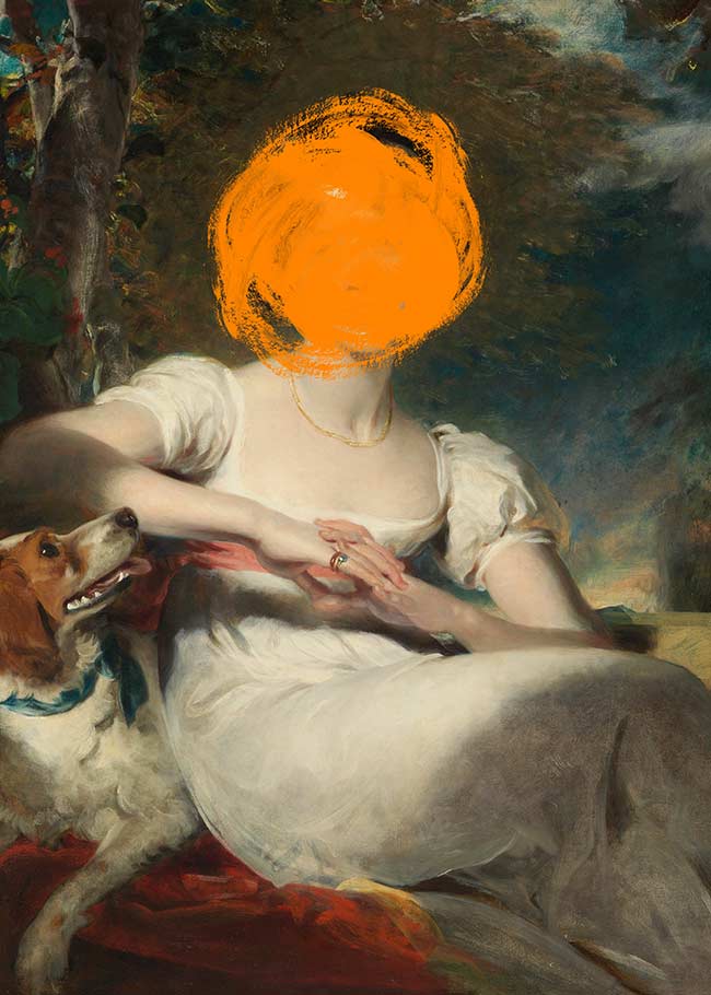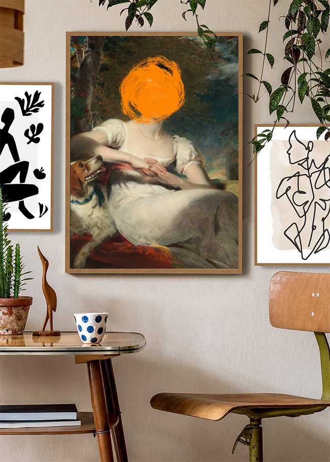 Created from a vintage artwork that has been altered with spraypaint and paint splats, this quirky piece is the perfect addition to your home or office.