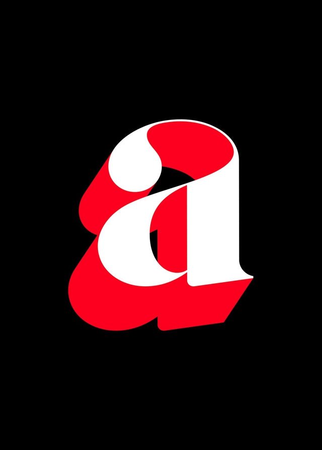 A single, elegant letter with a super stylish 3d projecting shadow, in bright red set on a solid black background.