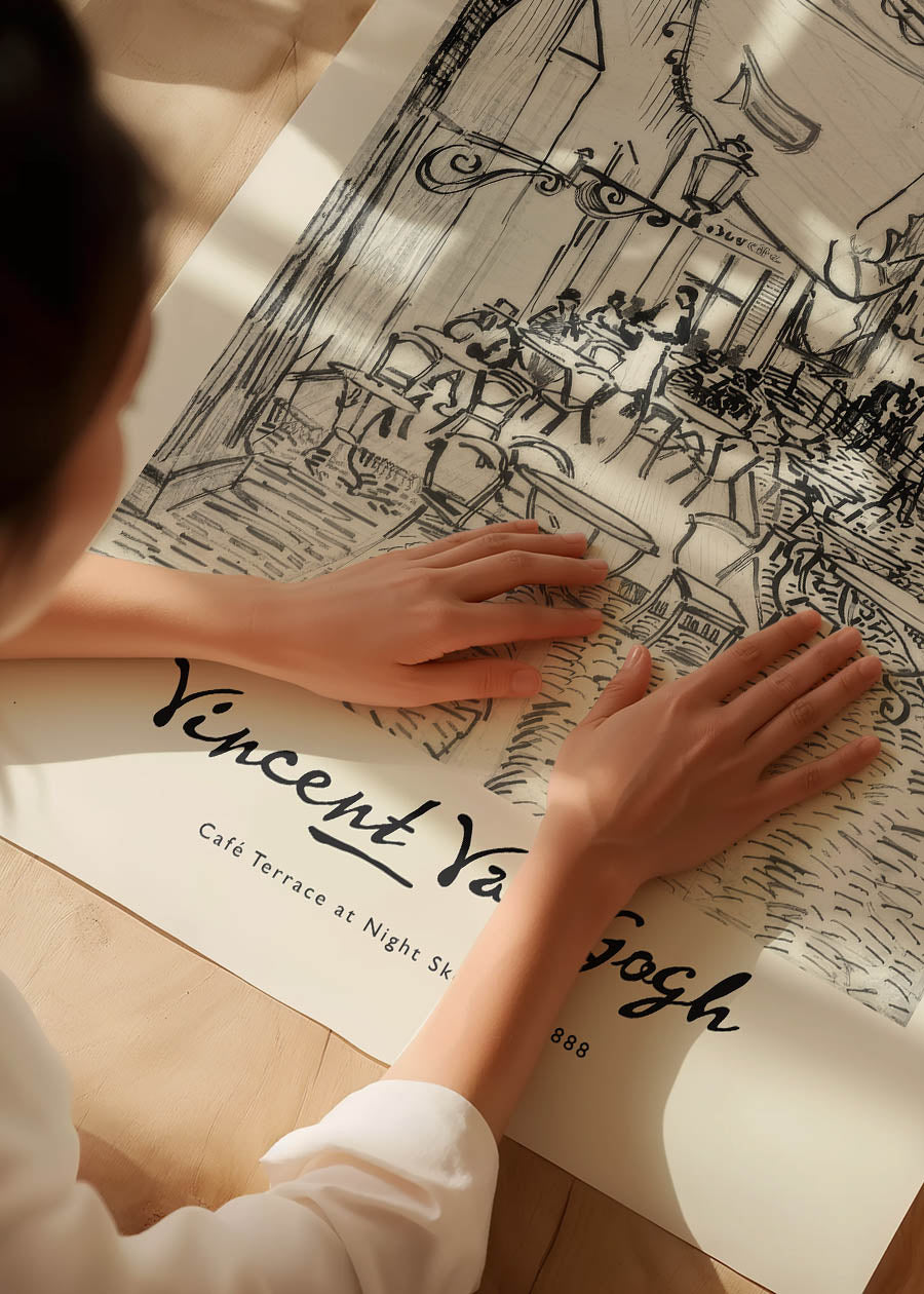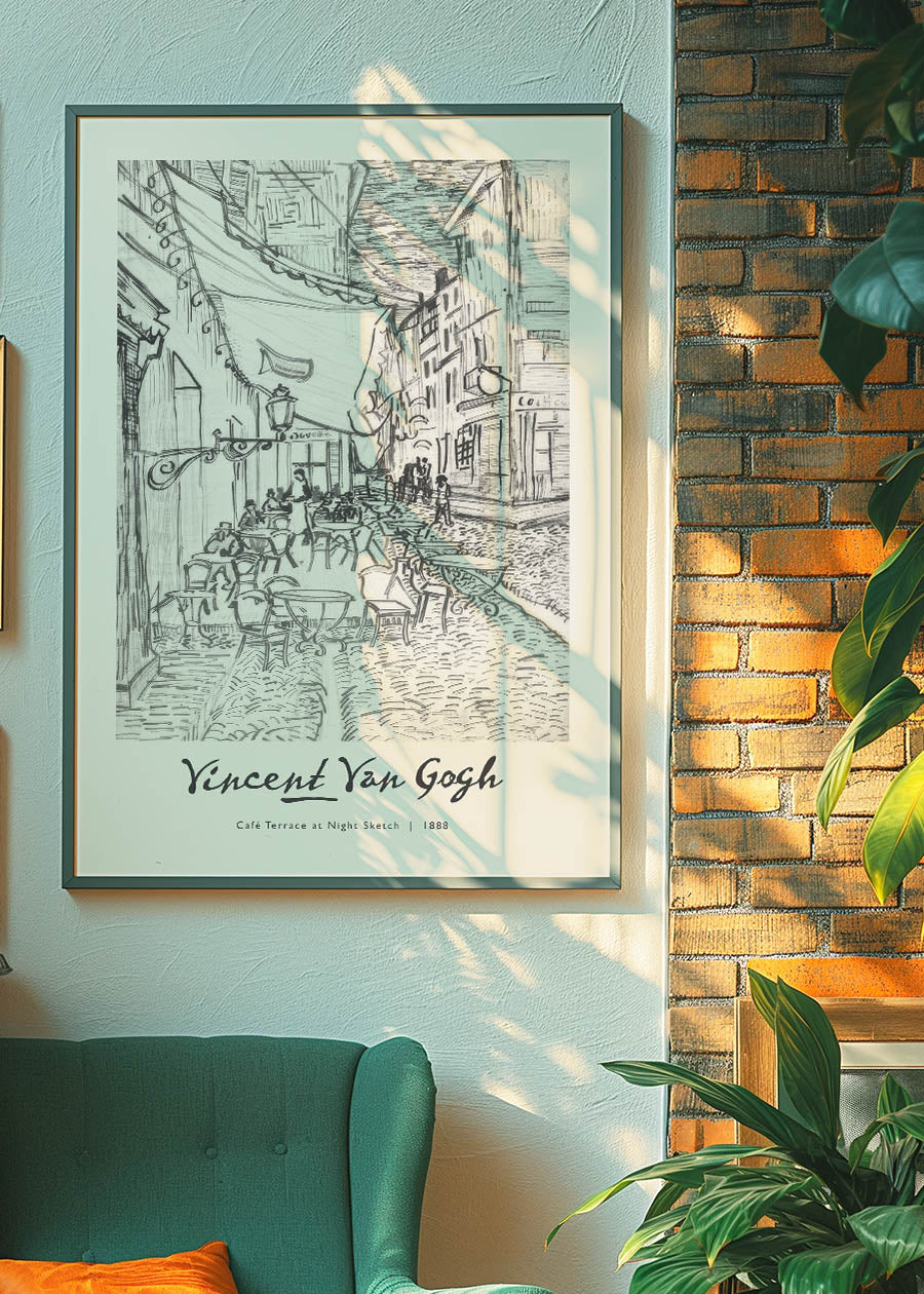 Vincent Van Gogh Pencil Sketch Poster Cafe Terrace 1888