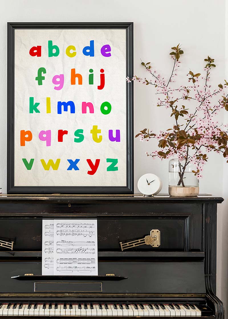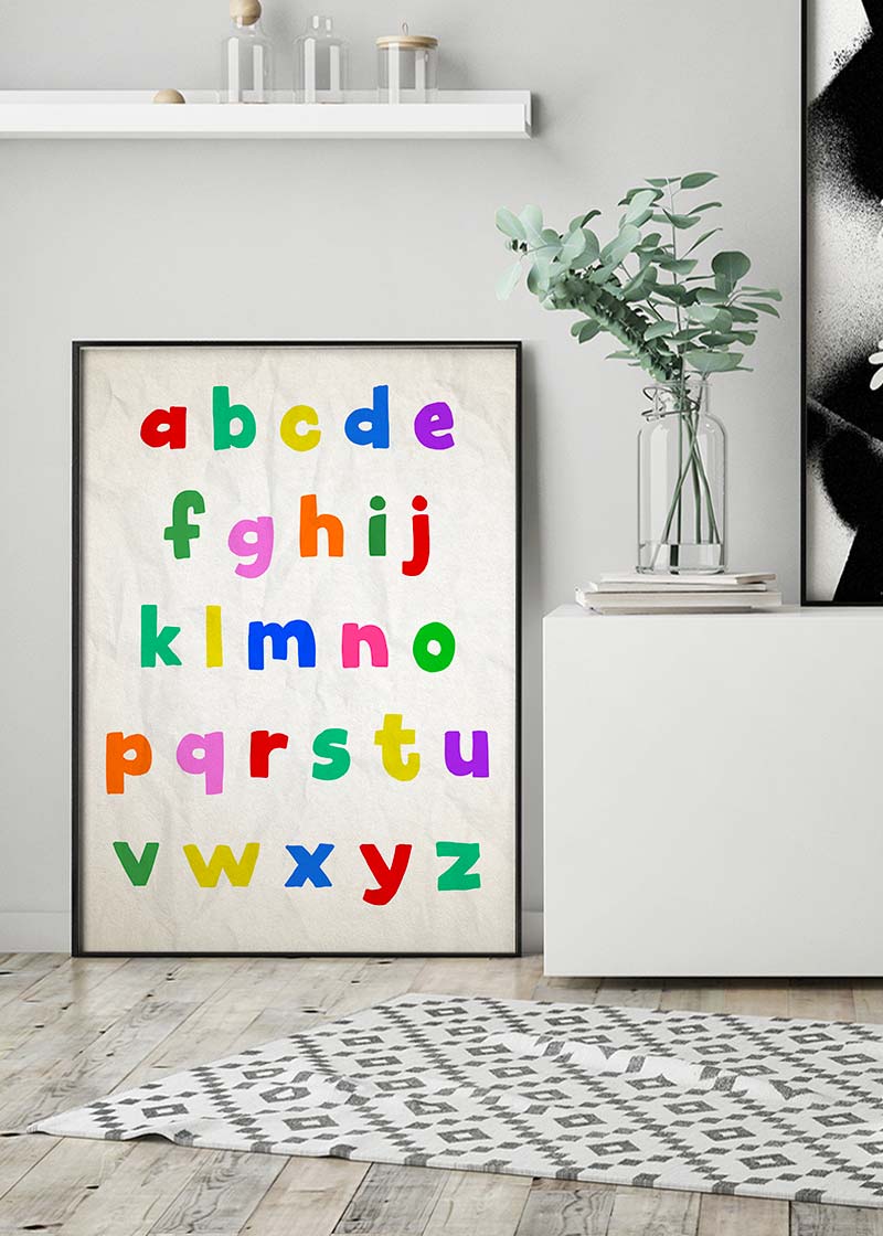 Within our diverse kids' collection, this print showcases playful yet tasteful designs. Explore lively animal pictures, dinosaur prints, cute slogans, rainbows, and educational maps.
