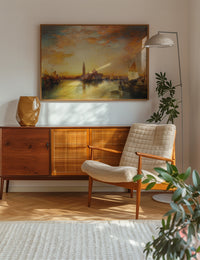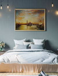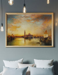 Add a touch of elegance to your home decor with Ducal Palace Sunset by Thomas Moran. This exquisite reproduction is printed on 230gsm matte art paper, ensuring high quality and crisp details. Available in 7 different sizes, it's the perfect way to transform any room with a stunning sunset view.