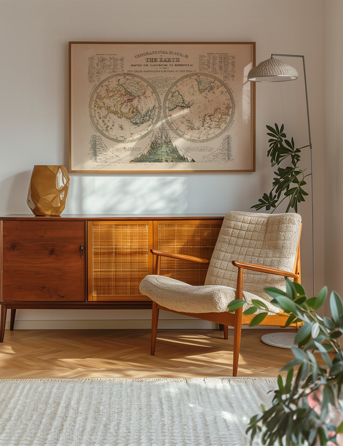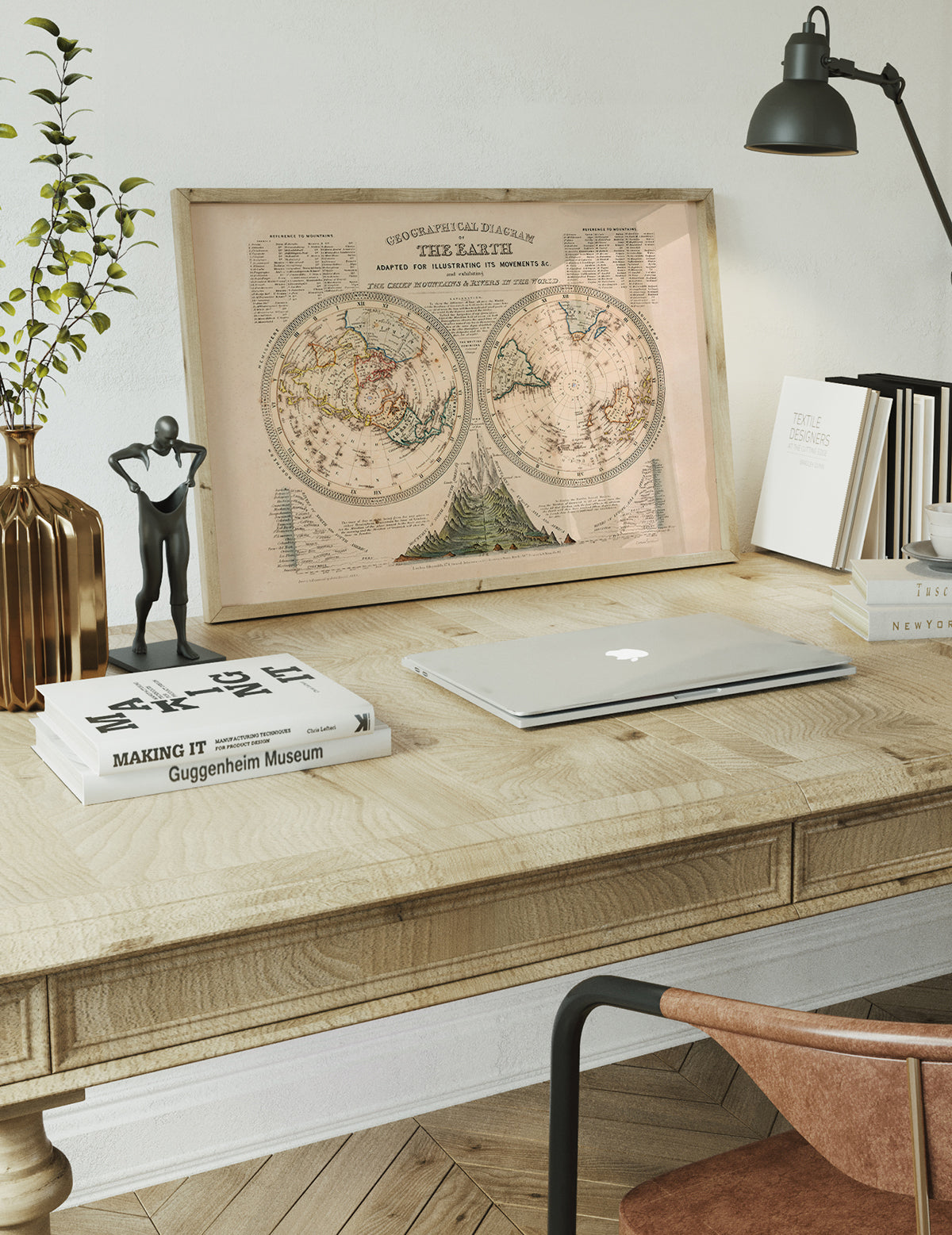 This high-quality reproduction art poster print of James Reynolds' geographical diagram of the Earth is both informative and visually appealing. Printed on heavy matte paper, it's a great addition to any collection. Add a wooden frame for your print to arrive professionally framed by us, and ready to hang straight on your wall.