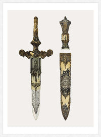 The Ancient Dagger illustration is timeless and classic, featuring a dagger with a classic handle. It's the perfect addition to any gallery wall for lovers of antiquity.