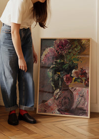 Enhance your home decor with this high quality reproduction poster of Lovis Corinth's "Chrysanthemums And Roses In A Pitcher". Printed on 230gsm matte art paper, this sophisticated and trendy print will transform any room. Available in 7 different sizes, experience the elegance of fine art in your own home.