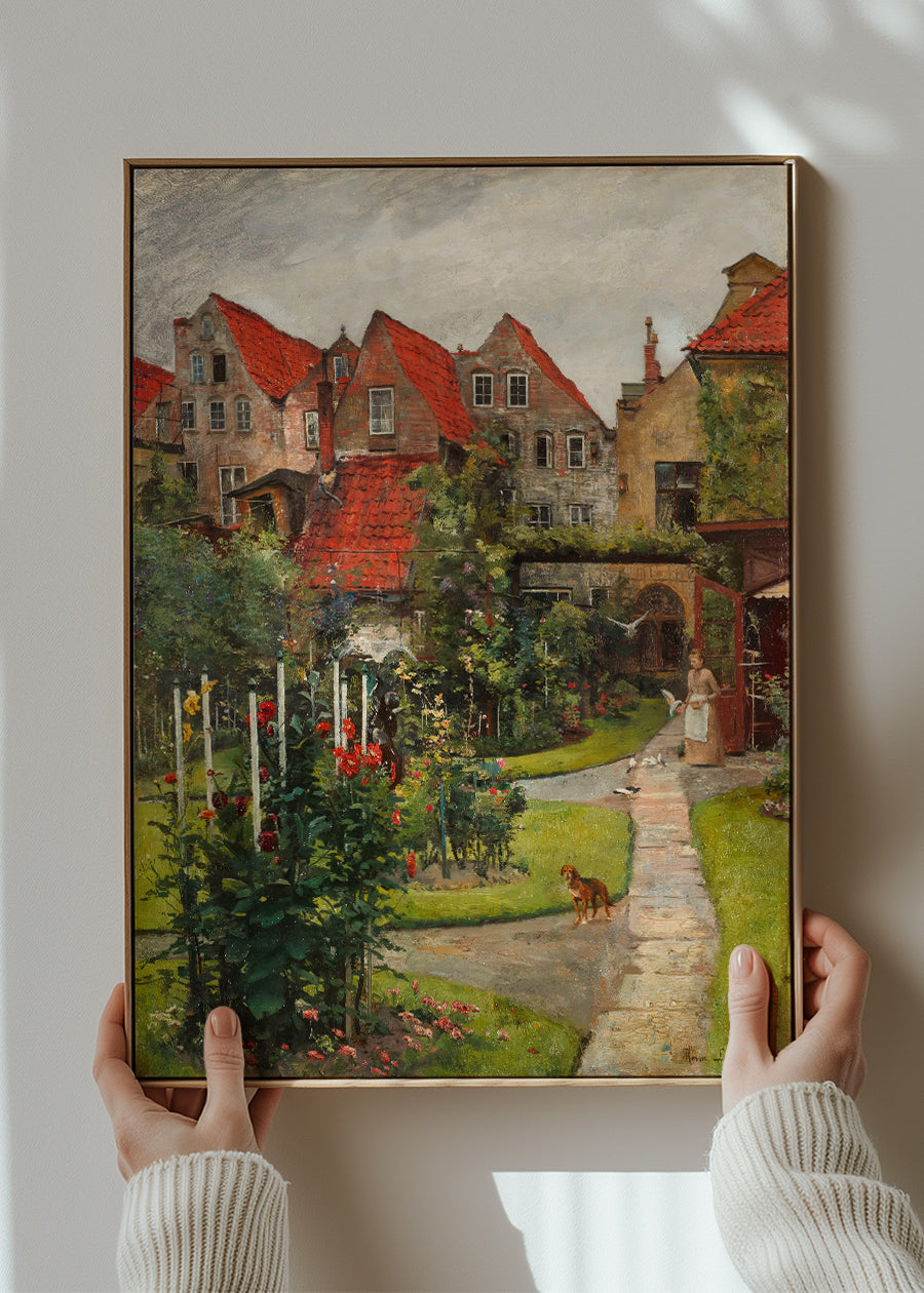 Transform your room with the sophisticated and trendy "Urban Garden in Lübeck" poster print by Hermann Linde. Reproduced on high quality 230gsm matte art paper, this home decor piece is available in 7 different sizes to fit any space. Elevate your decor with this stylish and expertly crafted art print.