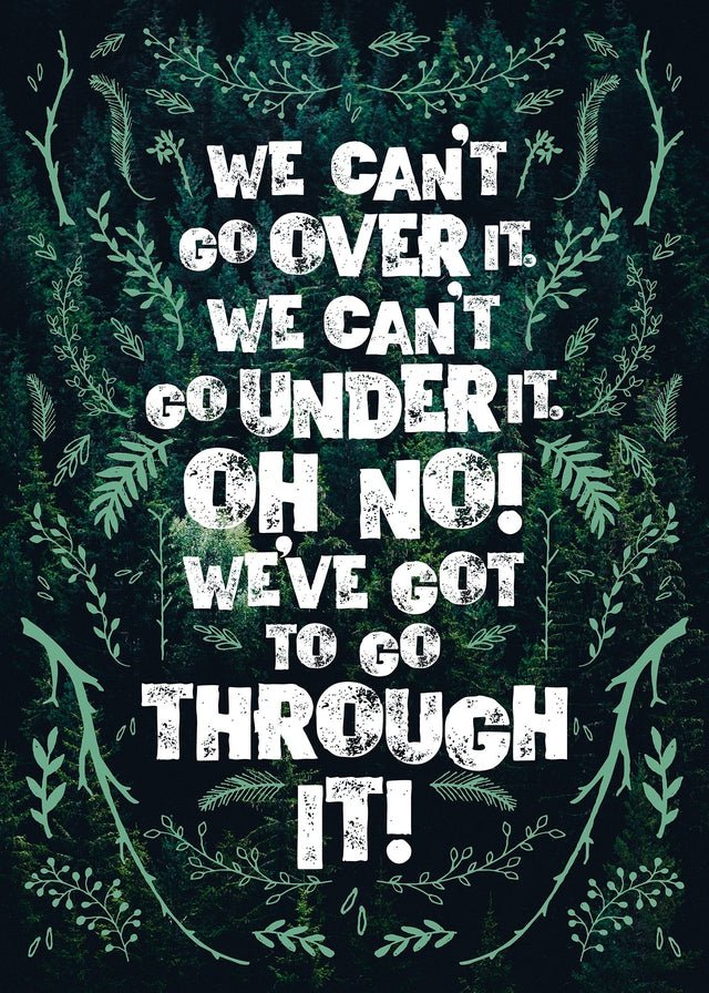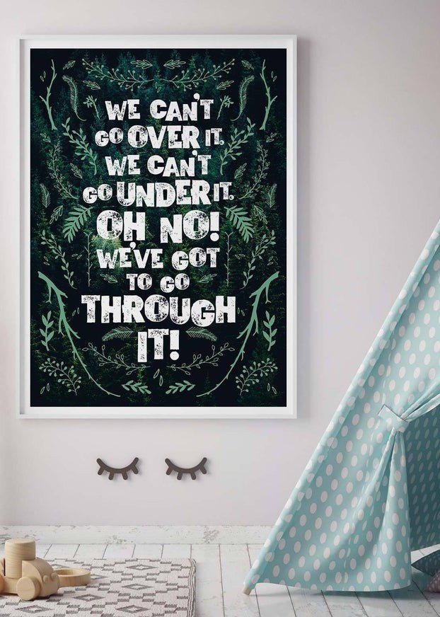 Beautiful slogan typography print which will brighten up any Childs Room or nursery! Cool typographic art print spelling out a famous line from the famous book "We're Going on A Bear Hunt".