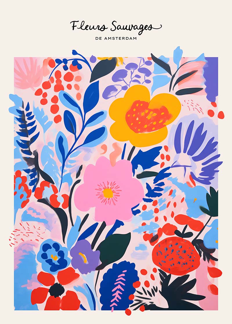 Experience the beauty of Amsterdam's famous flower market with our Wild Flowers of Amsterdam poster print. With its abstract painted style and bold, vibrant colors, this print captures the lively spring vibe of the city. Perfect for adding a touch of nature to your home decor.