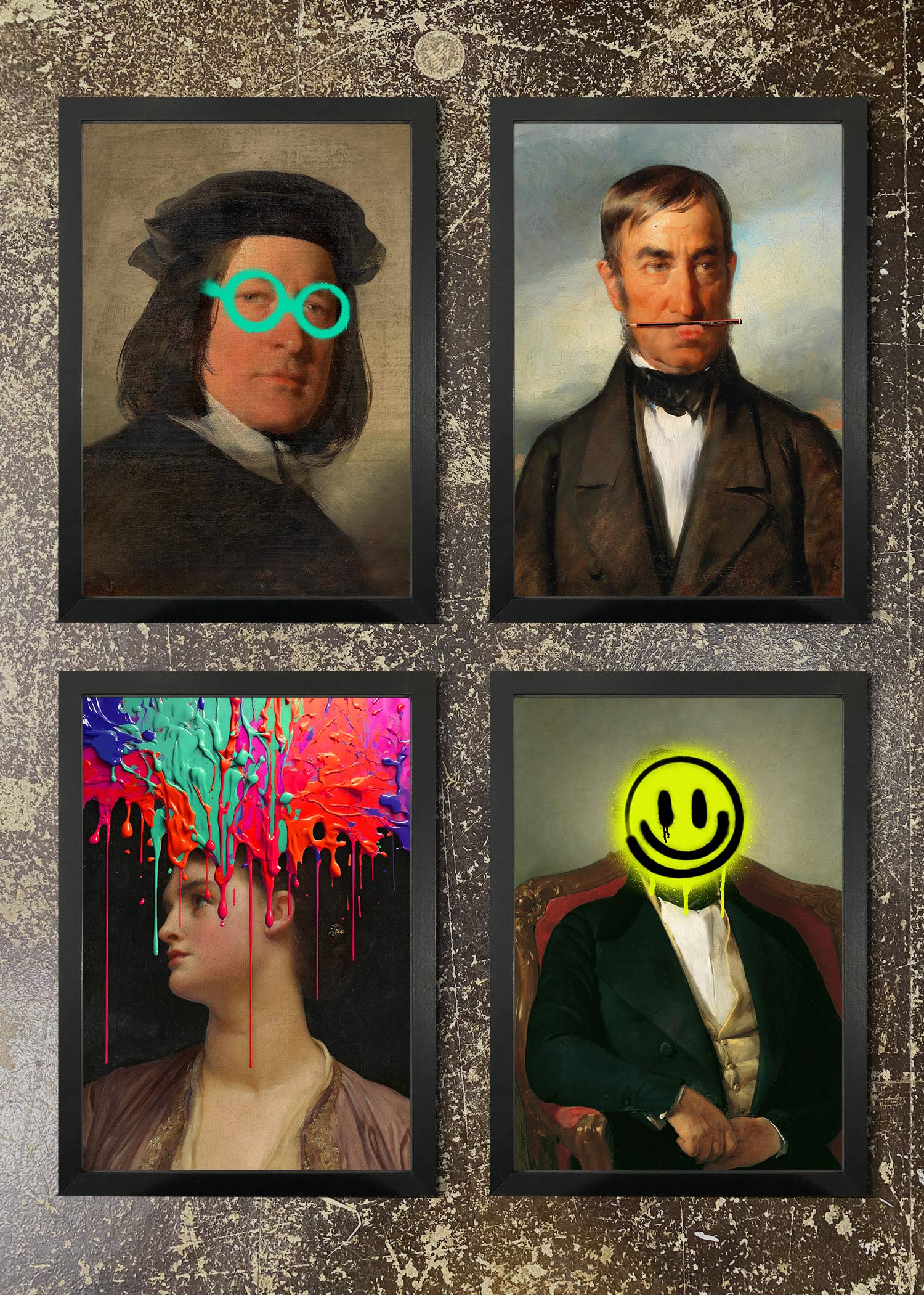 Featuring masterpiece paintings with our signature style of vandalism over the top these are perfect for making gallery walls in your home. Get that Maximalism look and save money at the same time.