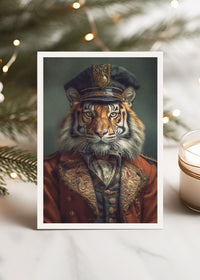 Festive Tiger with HatA6 Christmas Greetings Card