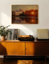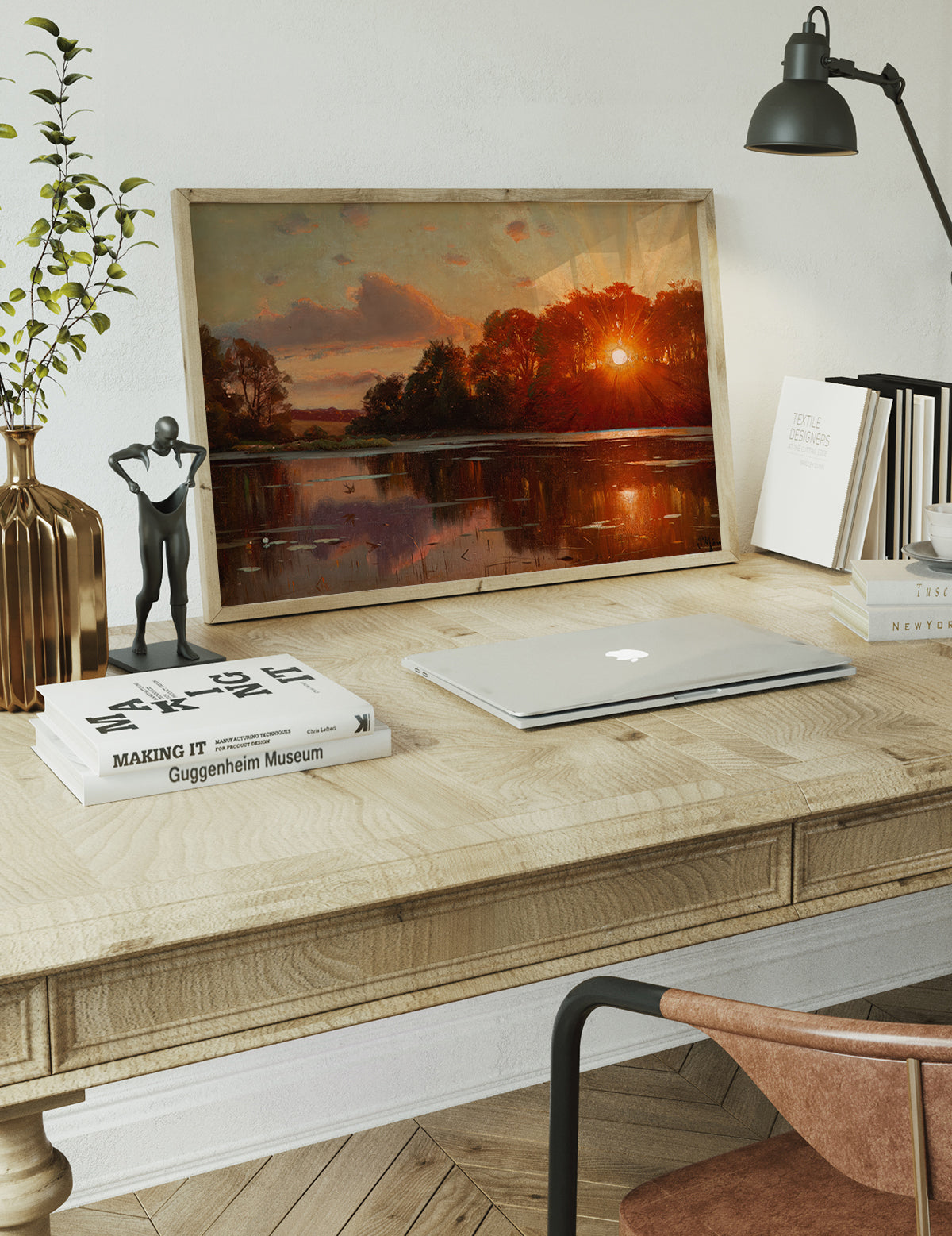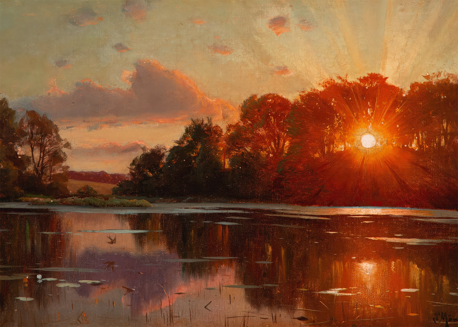 Transform your space with "Sunset at Orholm" by Peder Mørk Mønsted. This 230gsm matte art paper reproduction offers high quality and comes in 7 different sizes, making it the perfect addition to your home decor. Add a touch of sophistication and beauty to any room with this timeless piece.