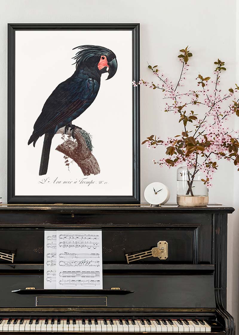A beautiful poster print of the Palm Cockatoo, Probosciger aterrimus from Natural History of Parrots (1801—1805) by Francois Levaillant. Reproduced in striking bright inks on our high quality matte paper.