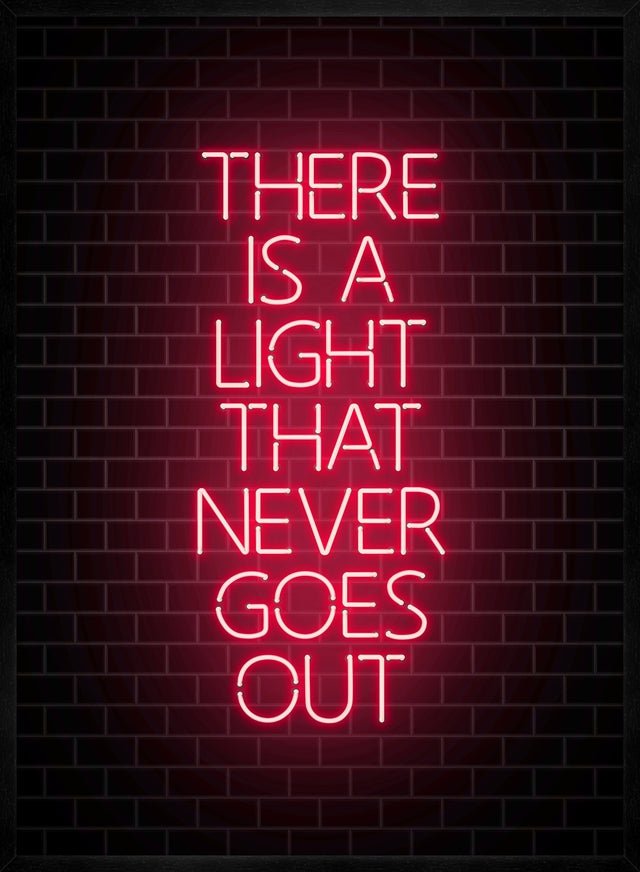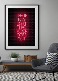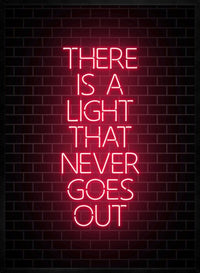 IT IS A FLAT ART PRINT DESIGNED TO LOOK LIKE A NEON SIGN As everybody's favourite miserable genius Morrissey put it - "THERE IS A LIGHT THAT NEVER GOES OUT", well now you can enjoy this classic Smiths lyric in your own front room! The Smiths frontman would surely have it no other way. NOTE: We recommend choosing a GLOSS finish for our Neon prints, they look amazing on our 200gsm gloss paper and it suits the artwork perfectly.